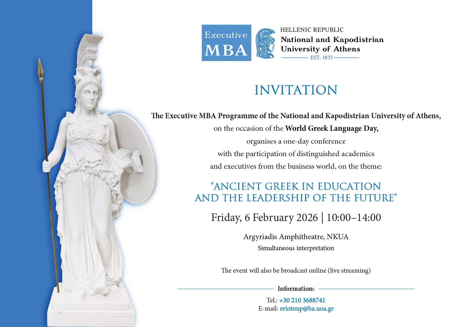 6 February, Greek Language Day, at the National and Kapodistrian University of Athens. Of course, Euroclassica participates! Please join our president — online streaming will be provided, just confirm via the indicated e-mail address.