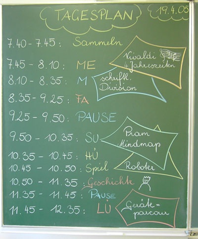 - keine starren 50min Einheiten, sondern sinnvolle Lerneinheiten planen
